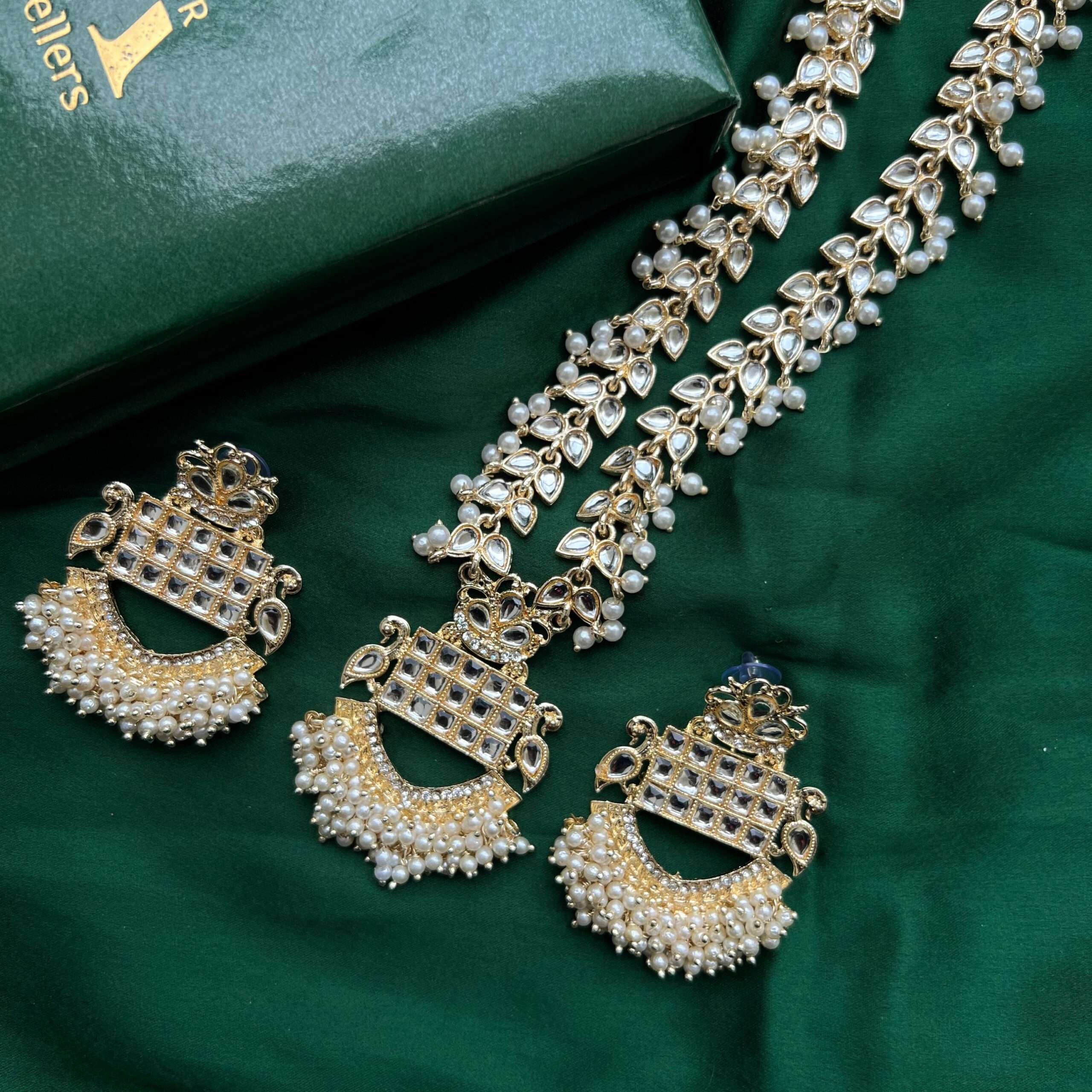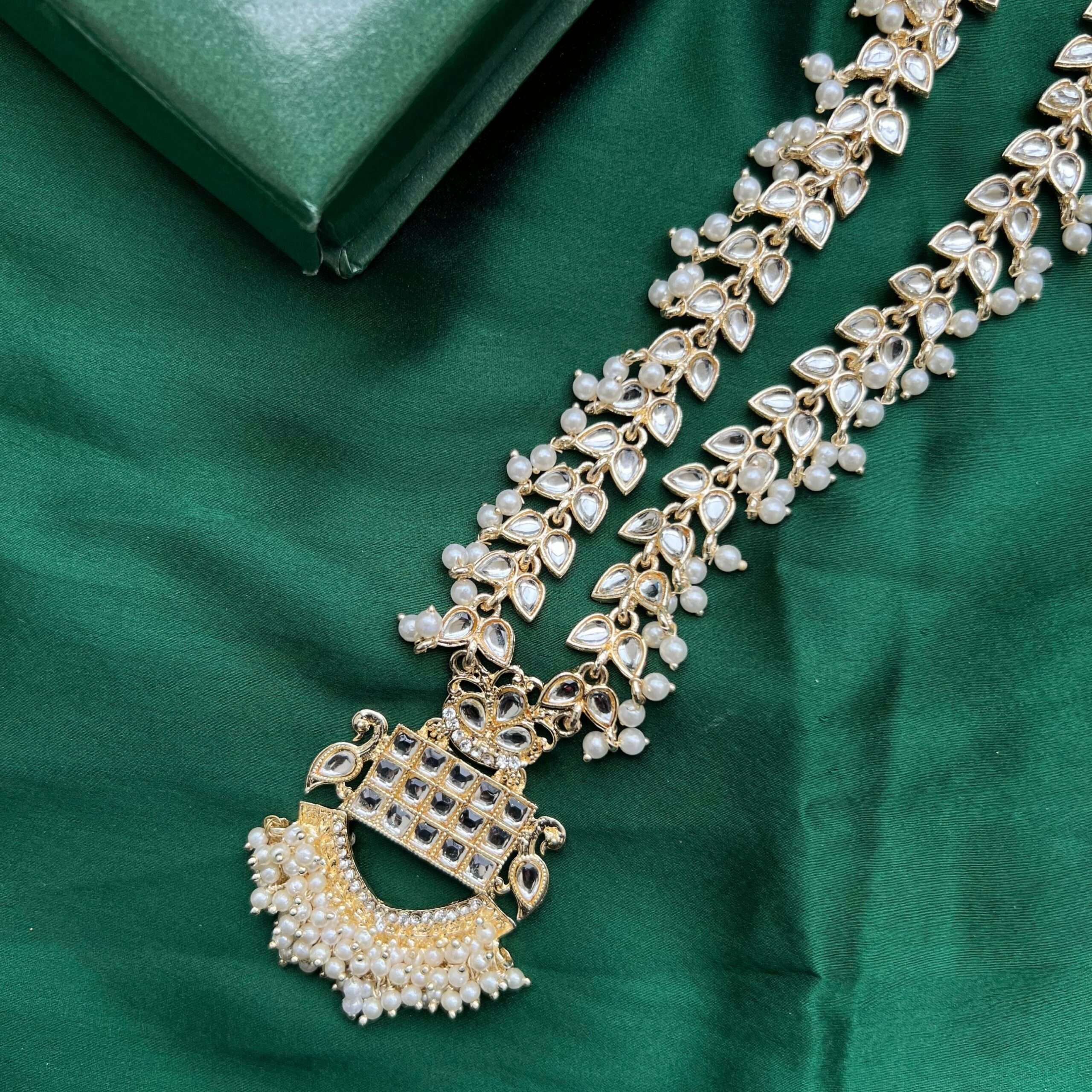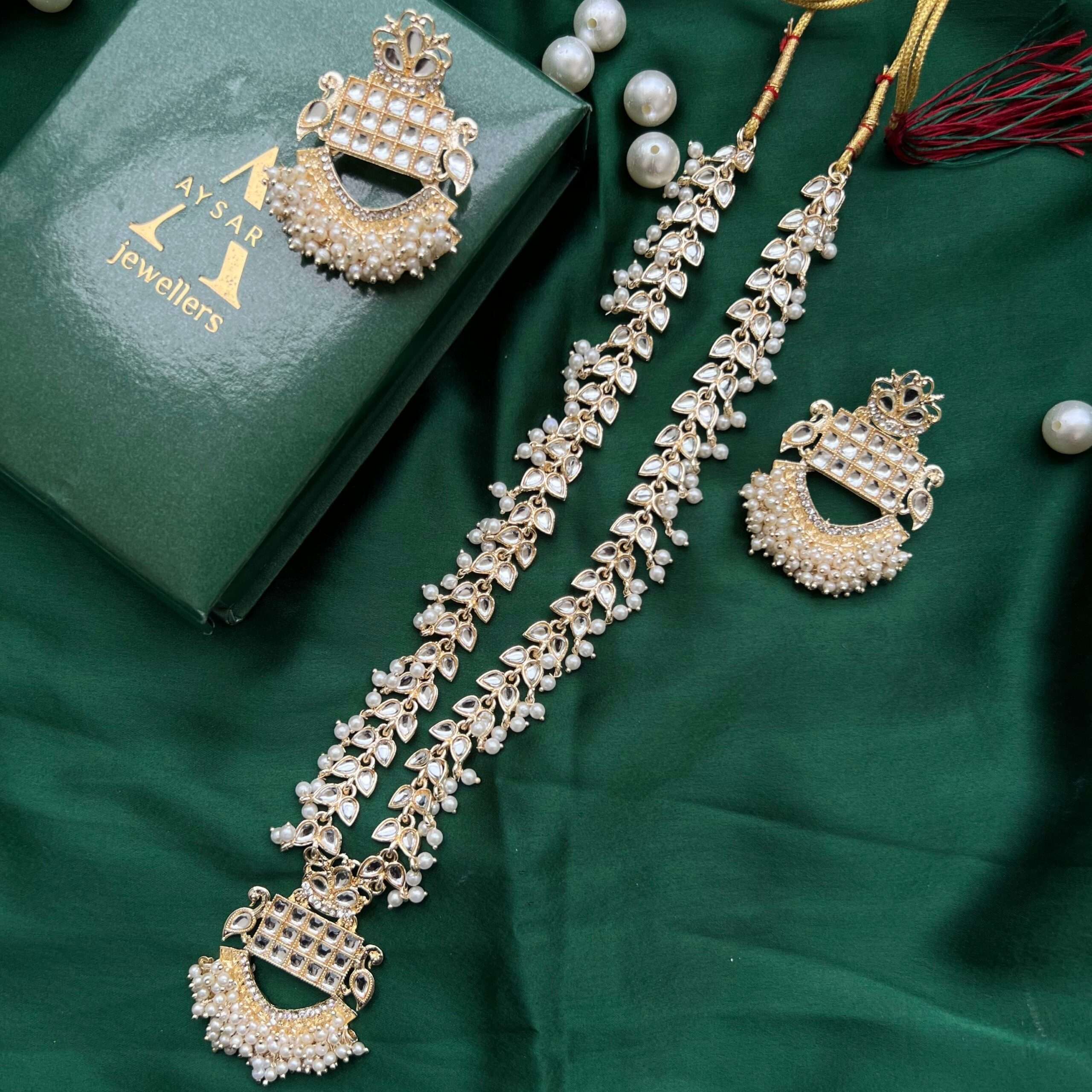 Beaded pachi kundan long haar white royal set with earrings quantity