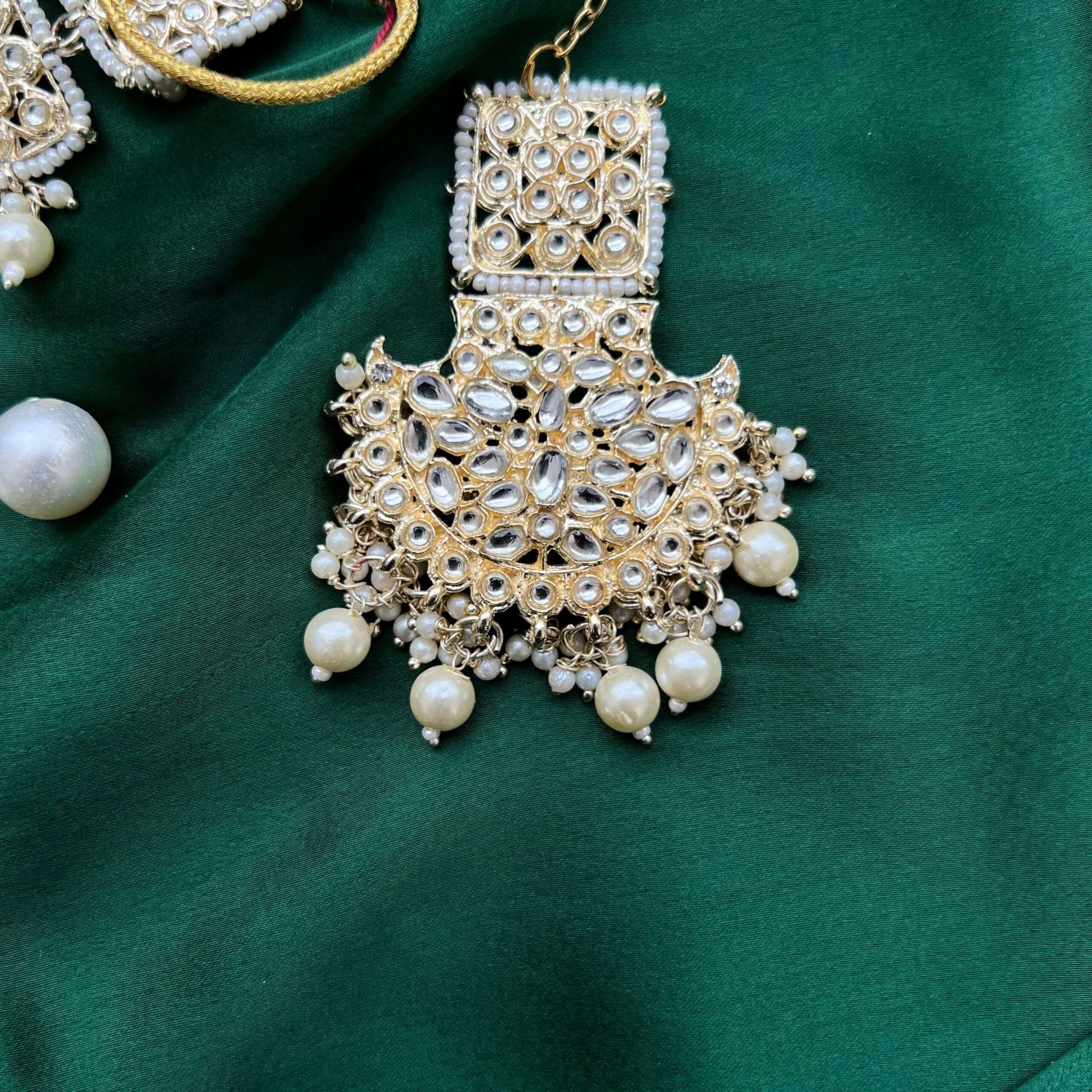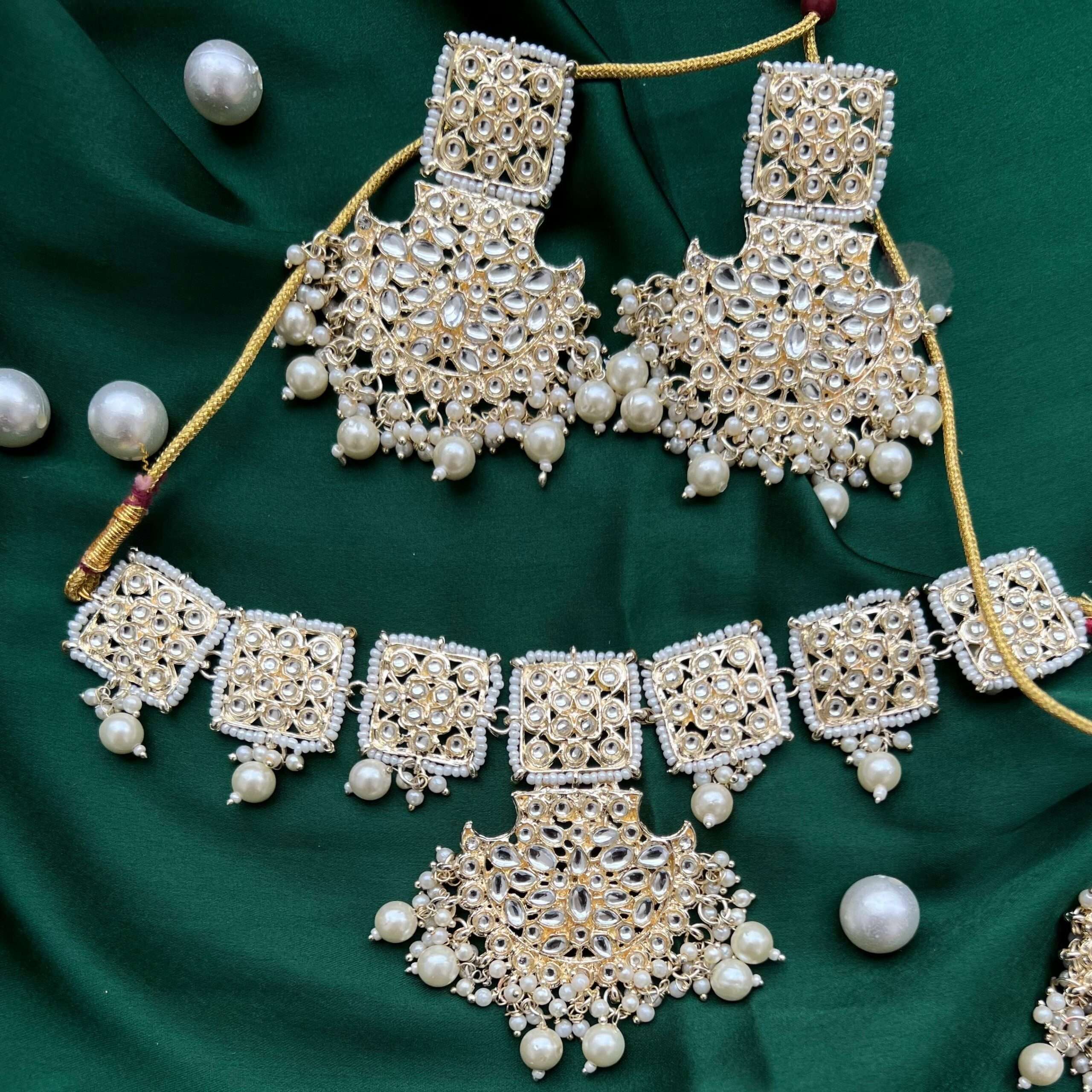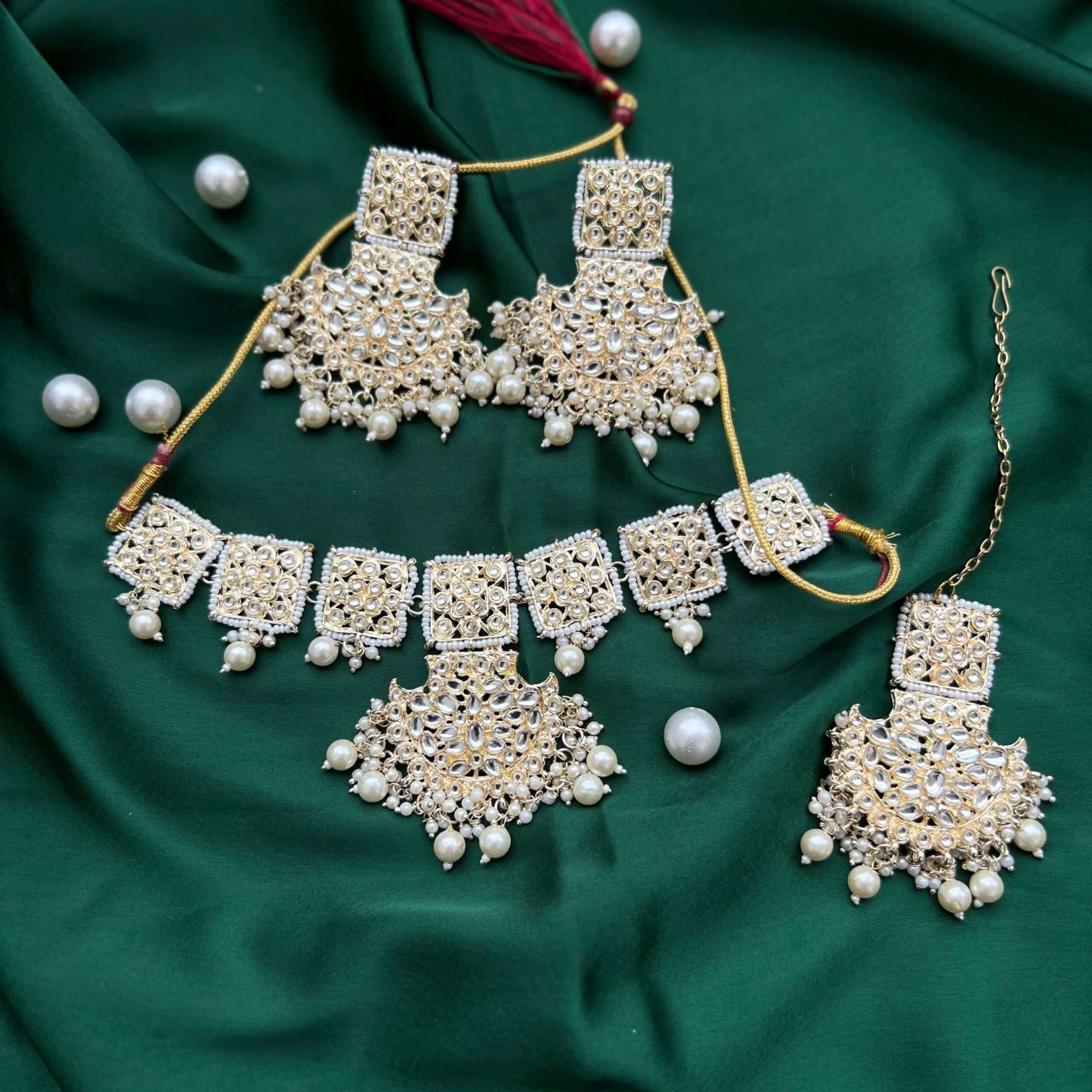 kundan bridal choker with earrings and maang teeka set white quantity